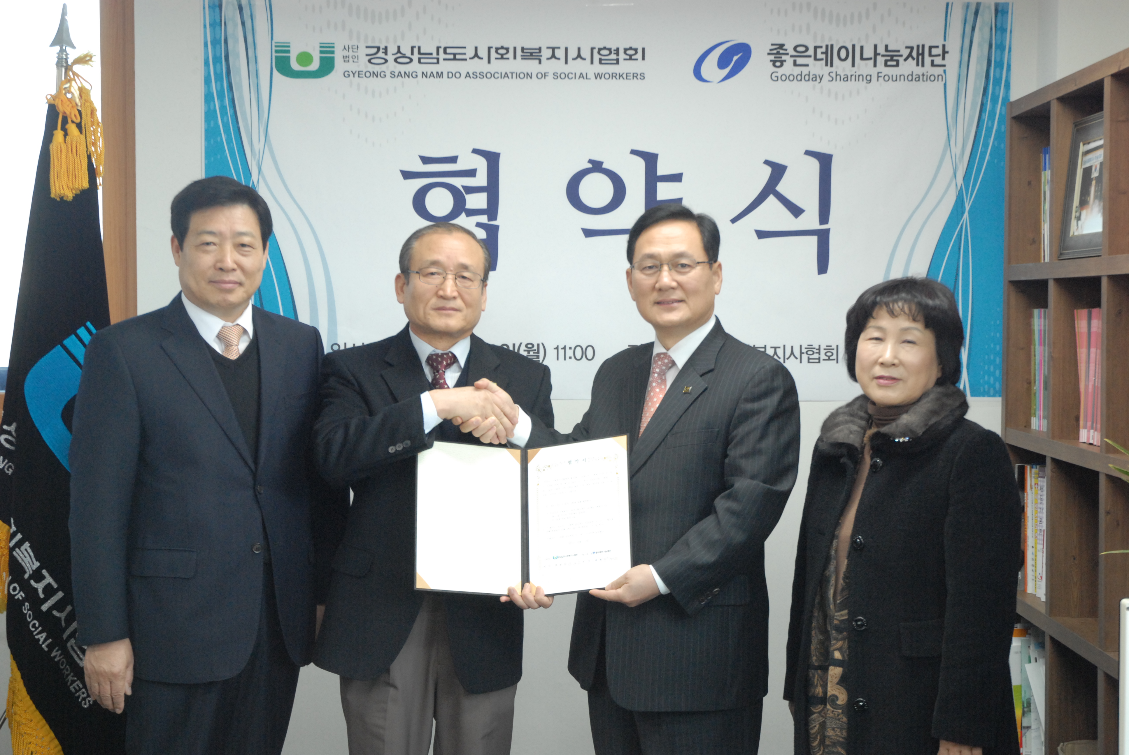 이번 협약을 통해 경남사회복지협의회는 매년 심사를 통해 ‘좋은데이 사회복지사상’을 선정하기로 했으며, 선발된 사회복지사들은 국제교류를 통해 선지 복지문화를 체험하고 복지활성화에 앞장서는 동기가 될 전망이다.