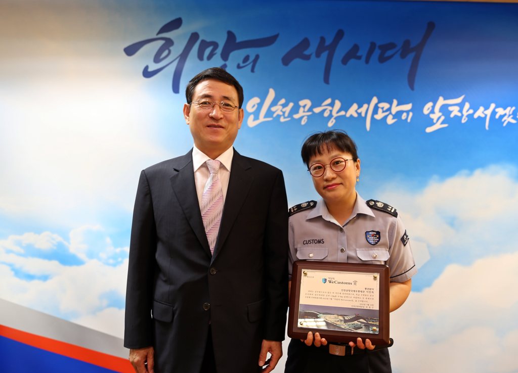 인천공항세관(세관장·박철구)은 14일 시가 6천만원 상당의 금괴를 특급우편물 속에 분산·은닉해 밀수입 하려한 여행자를 적발한 이민희 관세행정관을 7월 우리세관 사랑상(WeCustoms상) 수상자로 선정·시상했다.