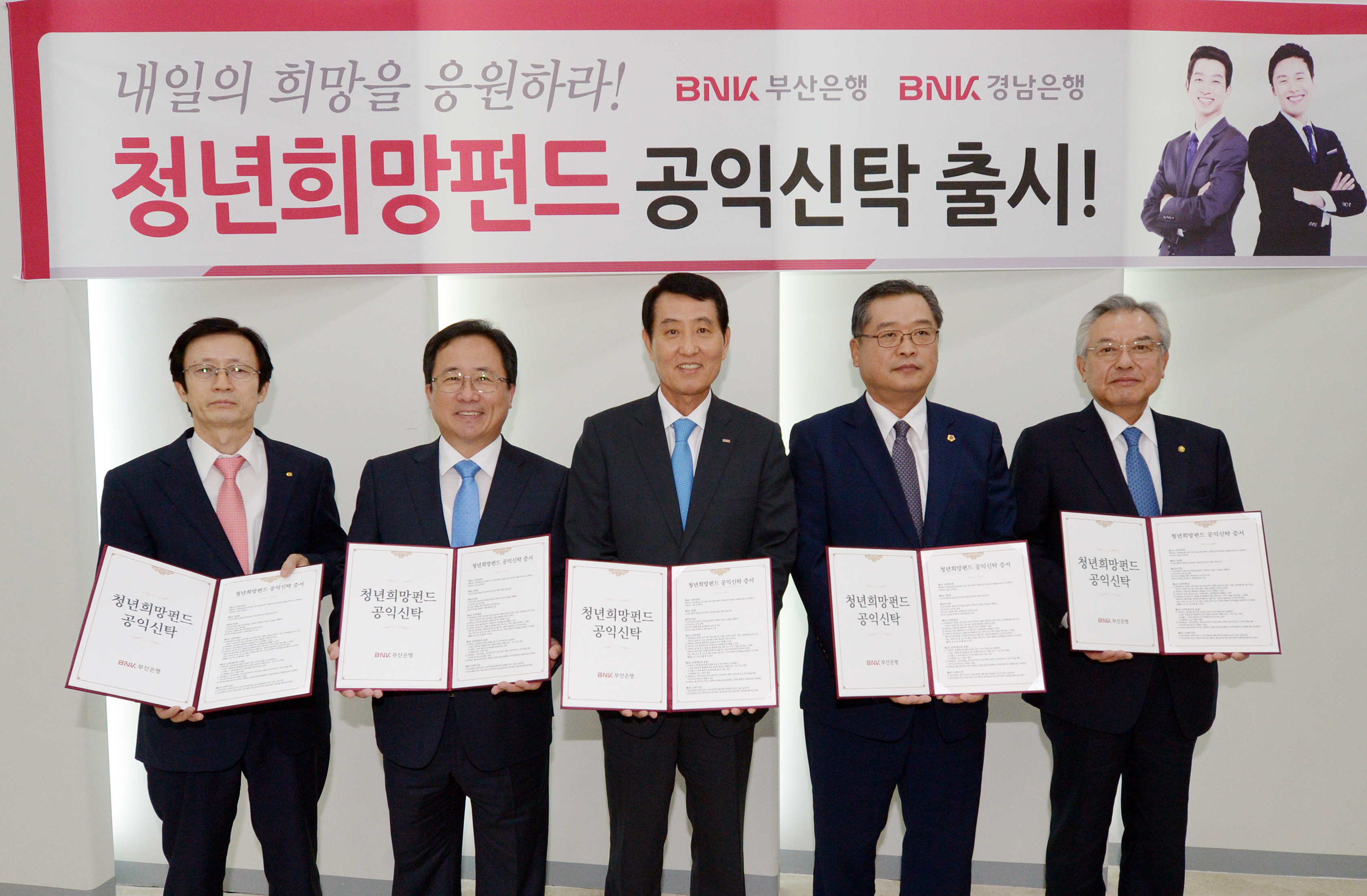 BNK금융그룹(회장ㆍ성세환) 부산은행과 경남은행이 ‘청년 일자리 창출’을 지원하기 위해 기부금을 모으는 ‘청년희망펀드 공익신탁’ 상품을 5일 출시했다.
