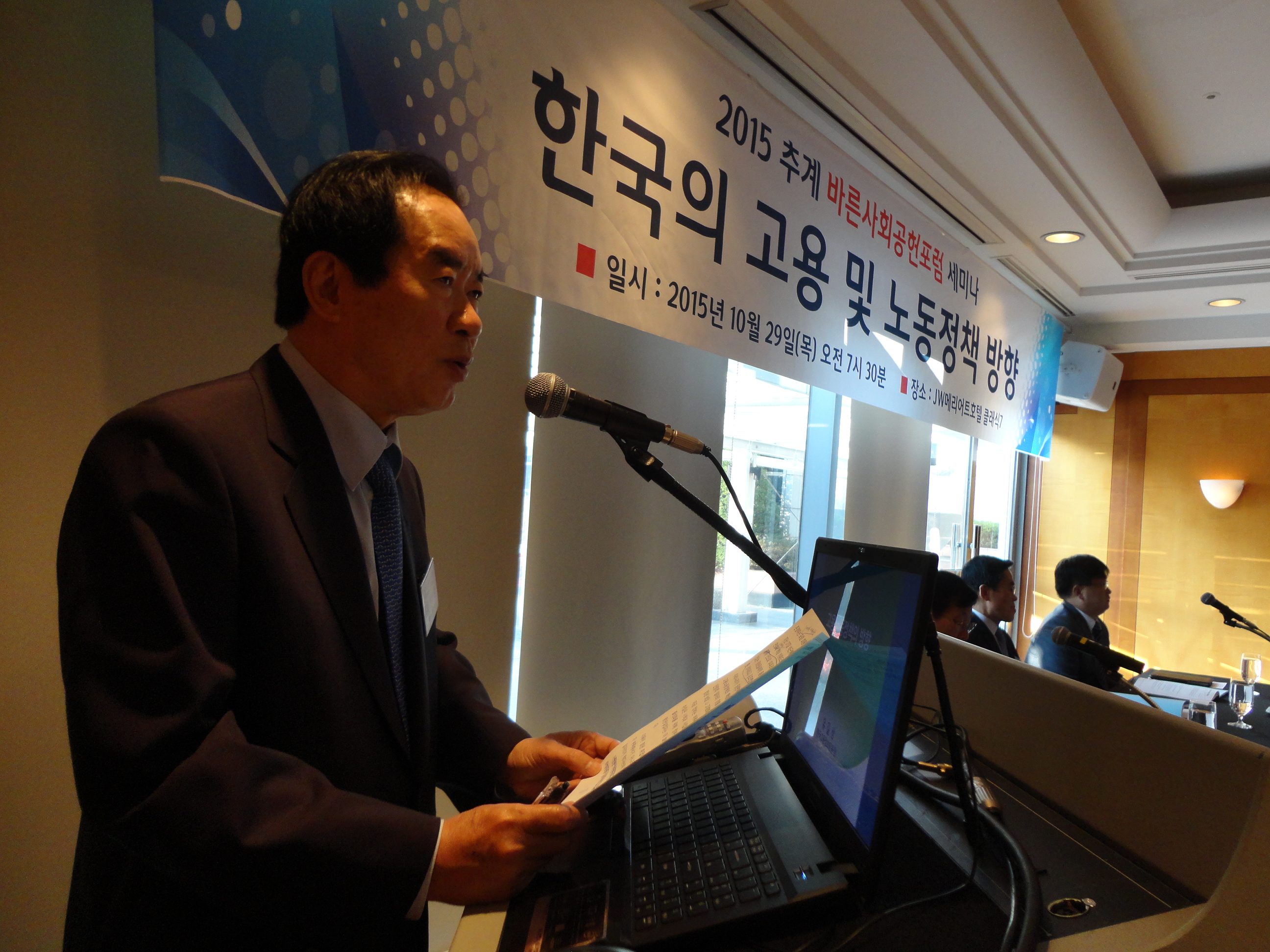 오늘 주제발표를 해주실 고용노동정책의 탁월한 식견을 가진 유길상 고용정보원장님과 토론에 참여하신 연세대 경영학 교수님, 그리고 존경하는 바른사회공헌포럼 회원님 모두에게 감사드립니다. 그리고 항상 사회를 맡아 정책적 시야를 넓게 펴 주시는 정경배 원장님 수고 많으셨습니다. 감사합니다.