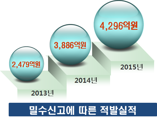 최근 3년간 밀수신고를 통한 단속금액은 계속 증가추세에 있으며,대형사건에 대한 밀수신고가 증가했기 때문인 것으로 분석됐다.