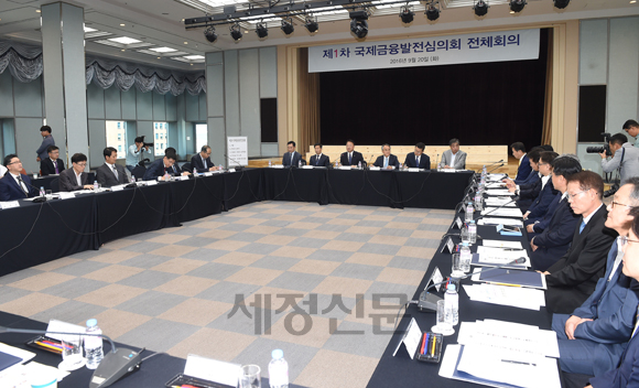 유일호 부총리 겸 기재부 장관이 20일 예금보험공사에서 열린 '제1차 국제금융발전심의회 전체회의'를 주재, 국제금융 환경 변화에 따른 정책수립, 제도개선 및 시장환경 조성 방안을 논의했다.