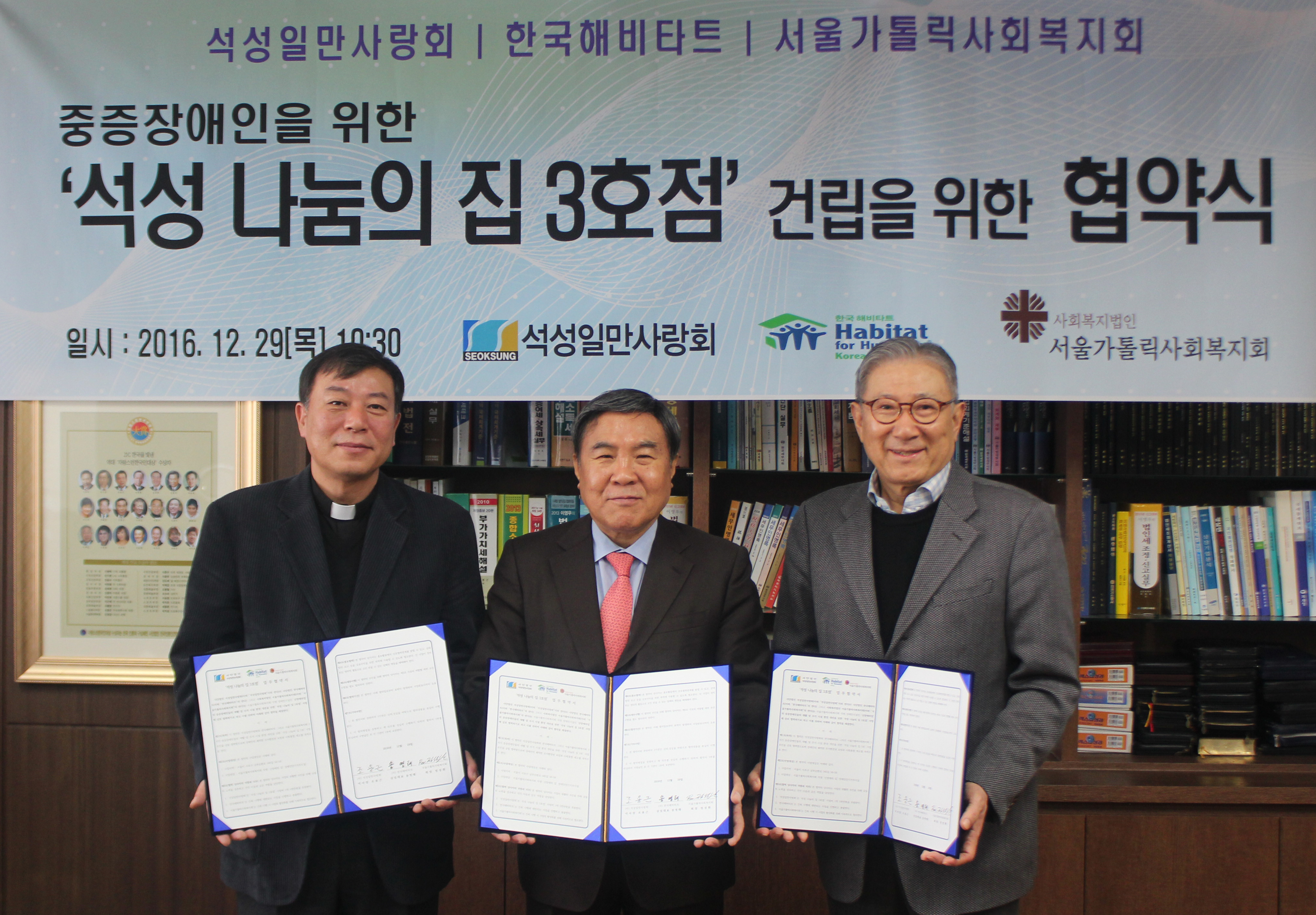 아울러 협력단체인 한국해비타트(상임대표 송영태)는 시설물의 건축을 담당하고, 서울가톨릭사회복지회(회장 정성환 신부)는 새롭게 리모델링한 ‘석성 나눔의 집 3호점’을 보다 쾌적하고 효율적으로 운영하게 된다.