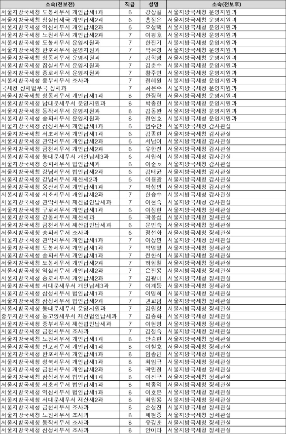 국세청 6급 이하 직원 승진인사 명단[서울지방국세청]
