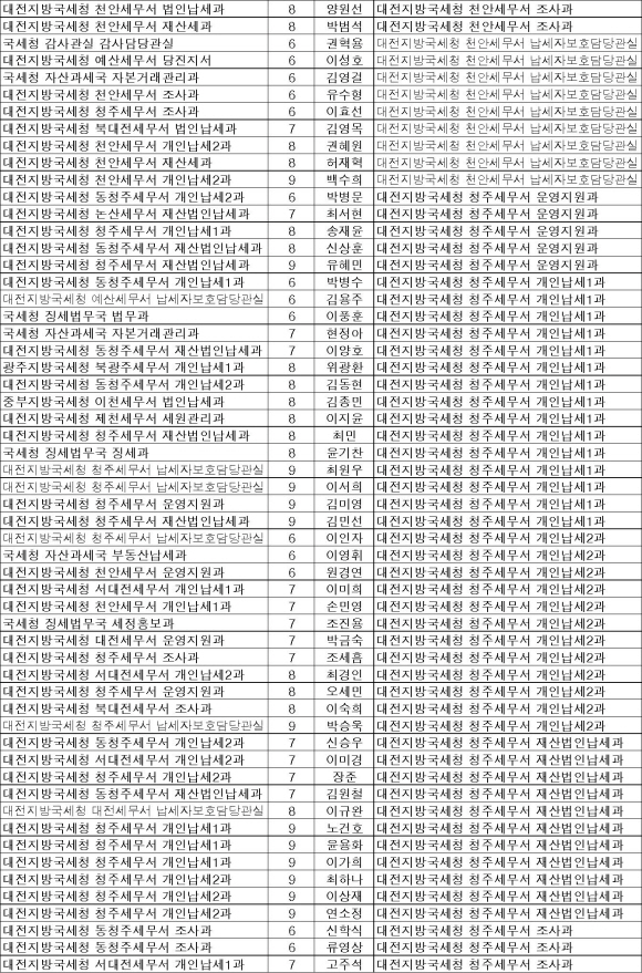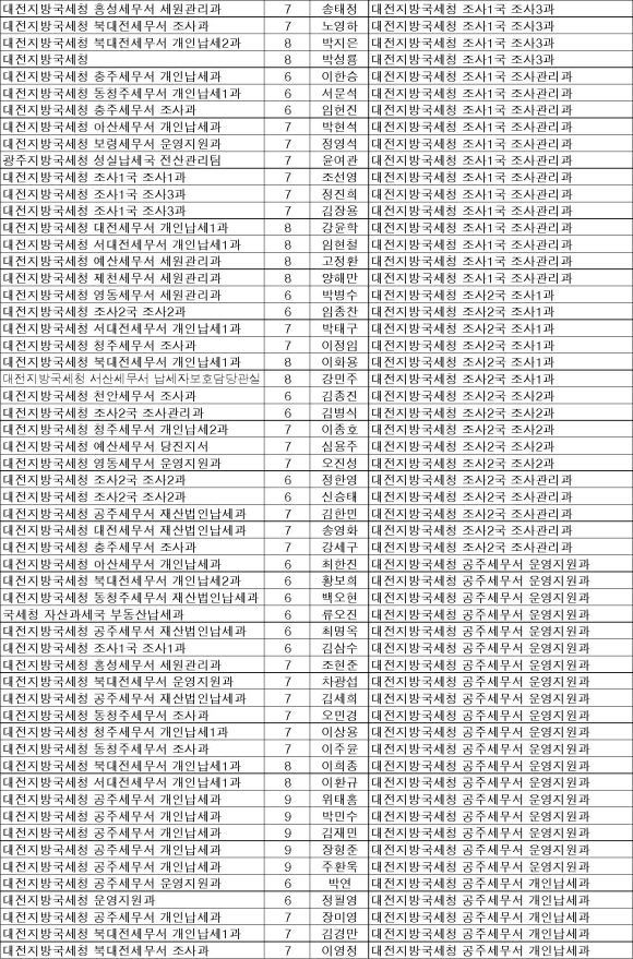 국세청 6급이하 직원 전보자 명단[대전청]