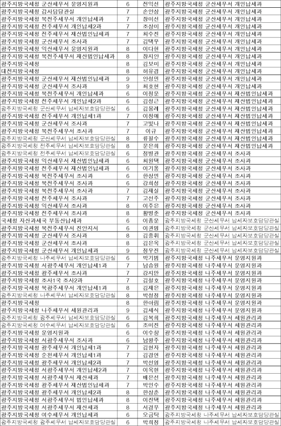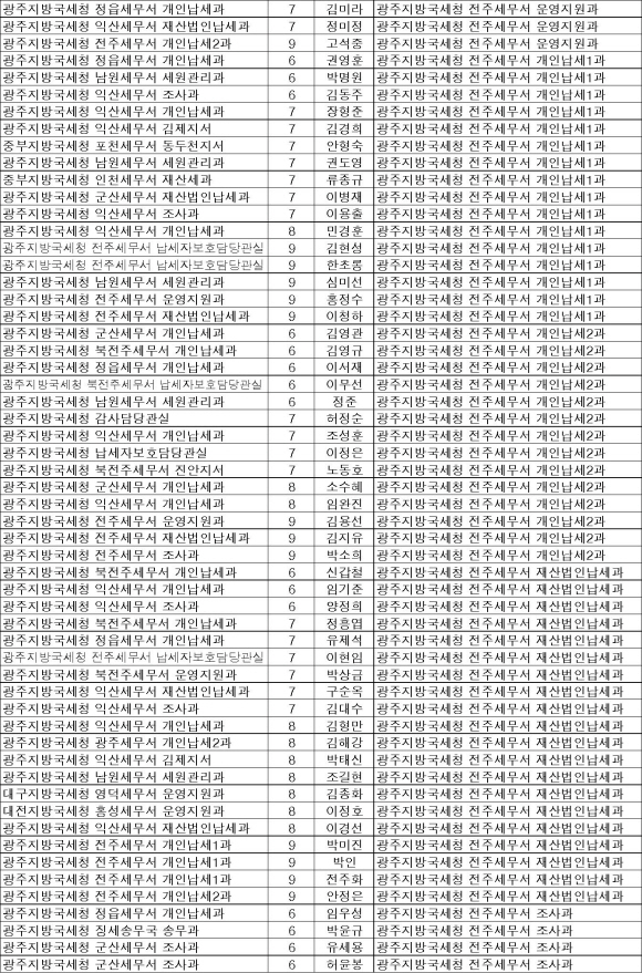 국세청 6급 이하 직원 승진인사 명단[국세청]