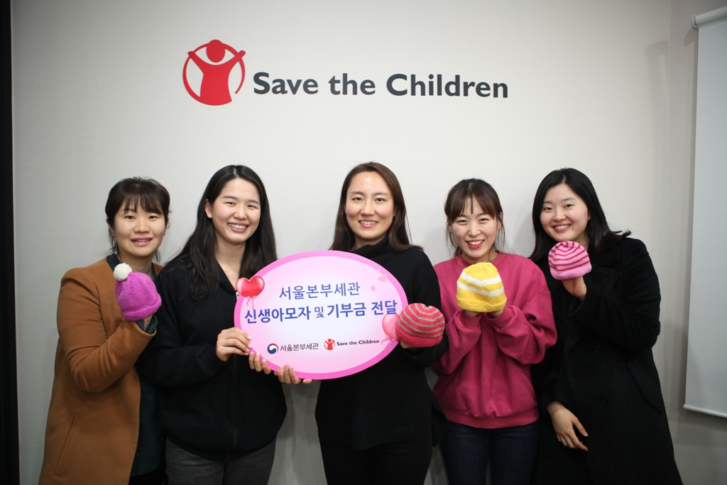 서울본부세관(세관장·노석환)은 11일 서울 마포구에 위치한 아동 구호 기관인 세이브더칠드런(save the children)을 찾아 직원들이 직접 뜬 털모자 80여개와 기부금을 기증했다고 밝혔다.