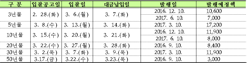 ⏢ 2017년 3월 국고채권 발행일정 (단위: 억 원)