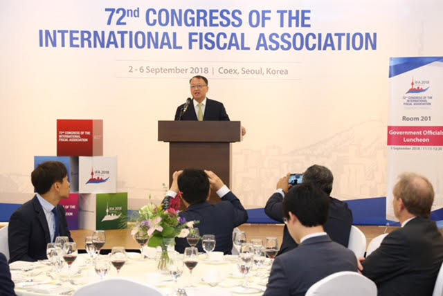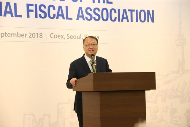 서울 삼성동 코엑스에서 열린 2018 국제조세협회(IFA) 연차총회에서 한승희 국세청장이 축사하고 있다.