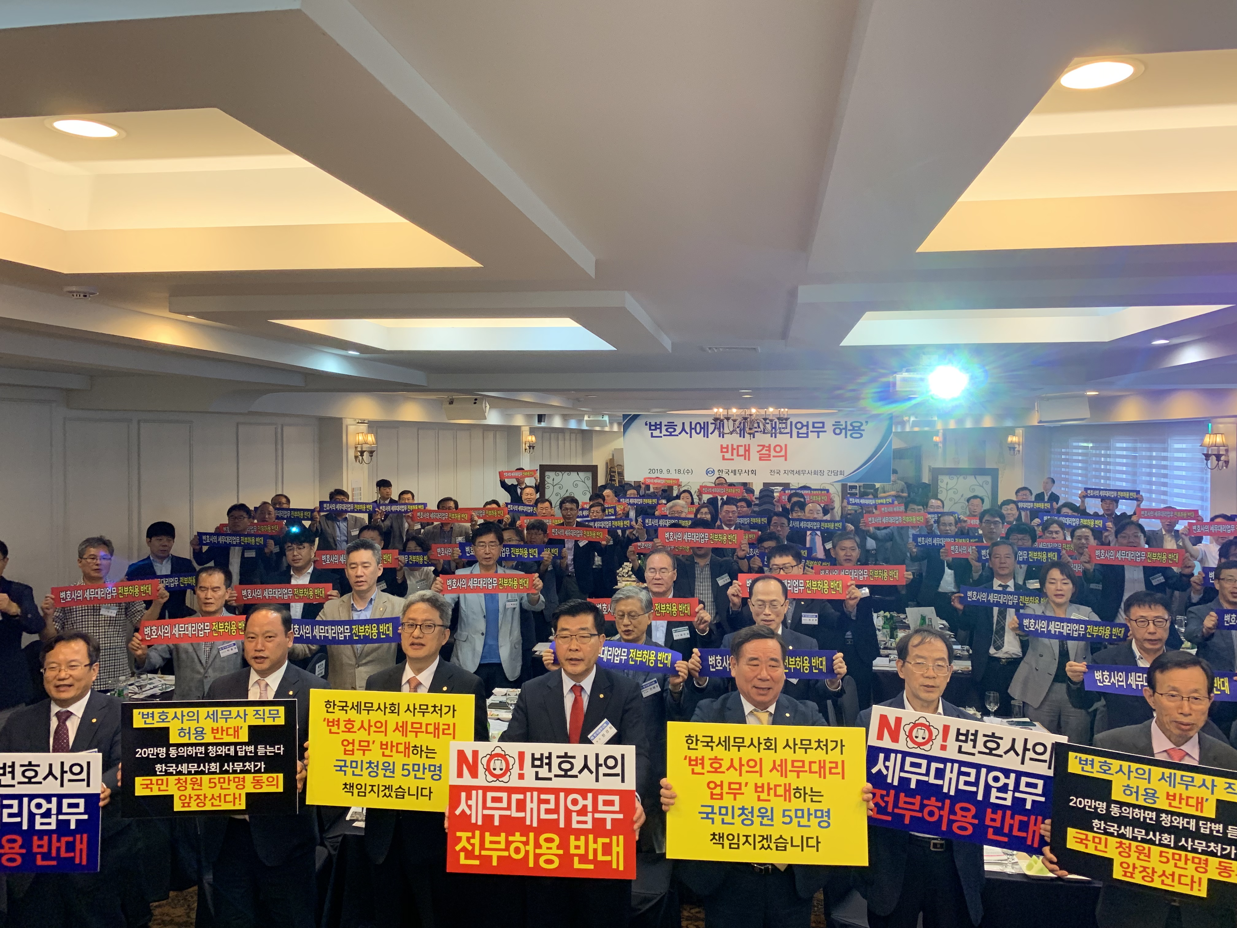 전국 100여명의 지역세무사회장들이 한자리에 모여 변호사에게 모든 세무대리업무를 허용한 세무사법 개정안에 대해 강력한 반대 입장을 결의했다.