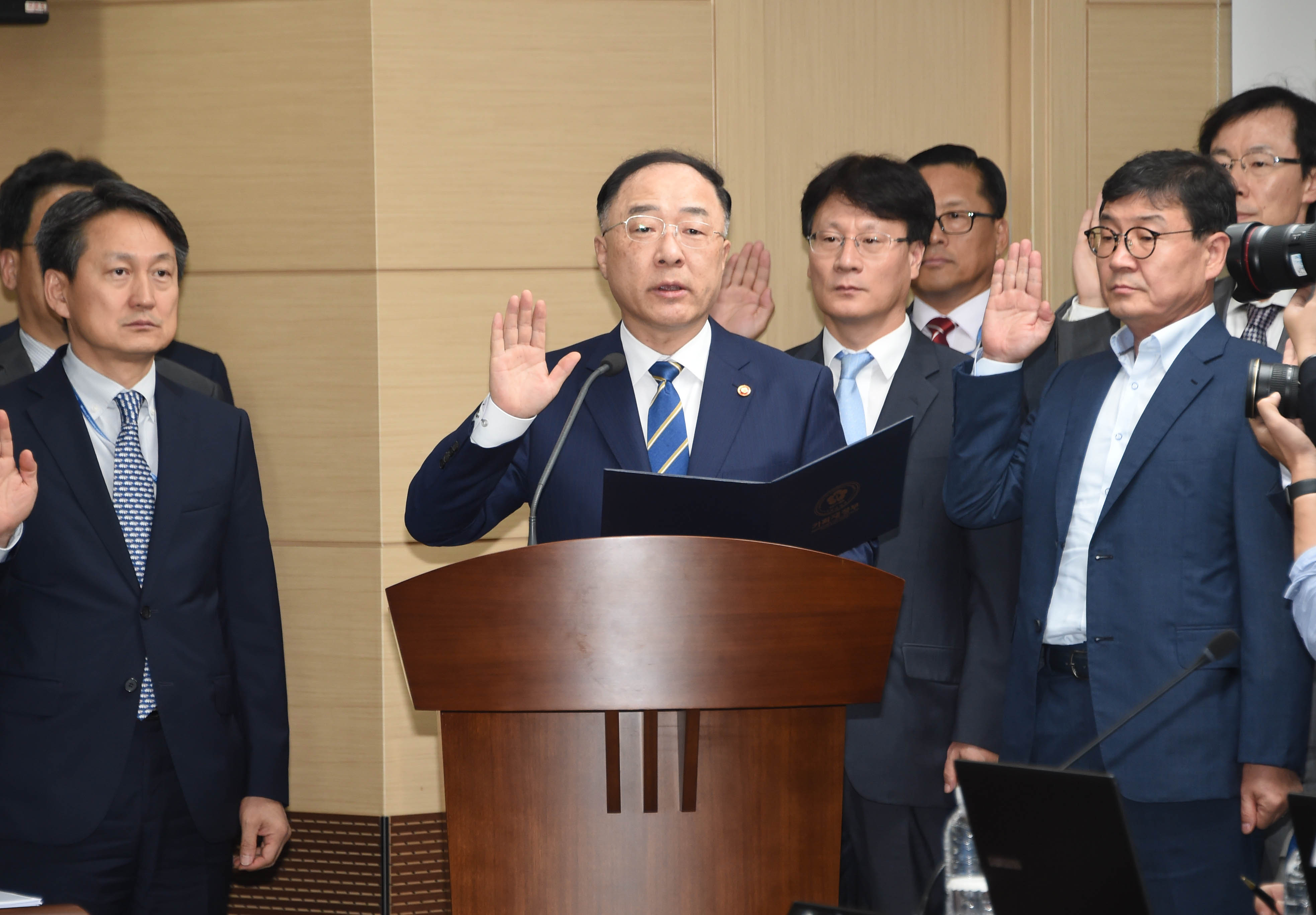 일본 수출규제와 관련해서는 “기업 피해 최소화를 위해 대체 수입처 확보 등 당기 공급 안정화를 지원하는 한편, 소재.부품.장비산업의 조속한 공급안정망 강화를 위해 내년도 지원 예산 규모를 금년의 2배 이상인 2.1조원으로 편성하고, 향후 안정적 재원 조달을 위해 소재.부품.장비를 위한 특별회계를 신설하는 방안도 추진 중”이라고 밝혔다.