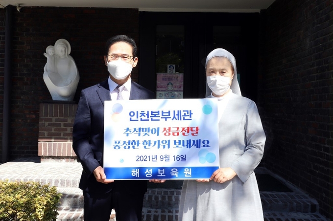 최능하 인천본부세관장은 16일 추석 명절을 앞두고 인천시 소재 사회복지법인 해성보육원 등 8개 사회복지시설을 차례로 방문해 직원들이 모은 사랑의 성금을 전달했다.