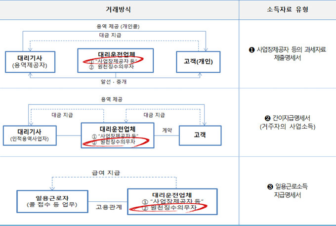 전국민 고용보험확대와 지원금 지급 등 범정부적인 복지정책을 지원하기 위해 연 단위로 제출하던 대리기사 등 8개 업종 용역제공자에 대한 소득자료 제출시기가 연 단위에서 올해 12월부터 월 단위로 단축·변경된다.