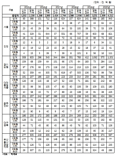 2019년 1천665건 3천251억원→2020년 2천309건 4천212억원