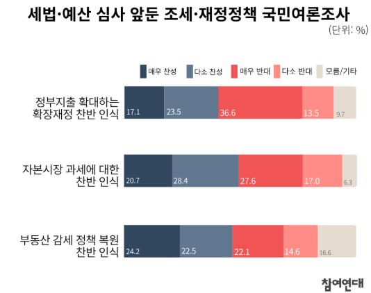 구체적인 문항으로는 △확장재정에 대한 찬반 △자본시장 과세에 대한 찬반 △부동산 감세 정책 복원에 대한 찬반을 물었다.