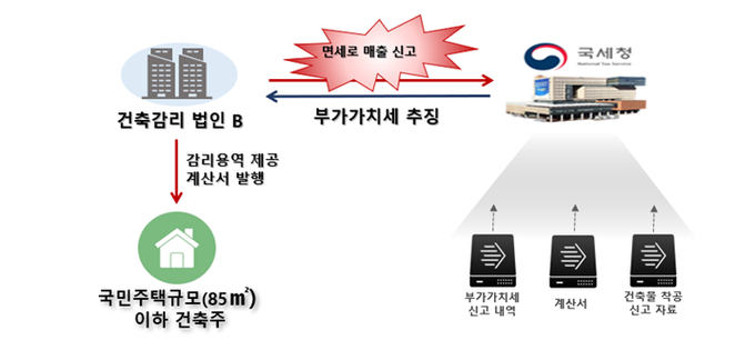 국세청은 건축물 착공 신고자료·건축물대장, 계산서 발급내역과 부가가치세 신고내역을 대사·분석한 결과 국민주택규모(85㎡) 이하의 주택에 감리용역을 제공하고 면세매출로 신고한 것이 확인돼 부가가치세 및 가산세를 추징했다.