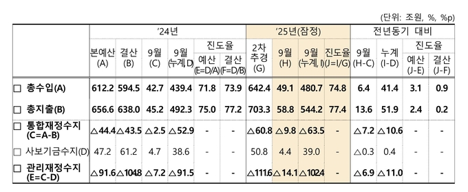 지난해에도 9월 누계 적자 규모가 2023년 대비 21조원 가까이 늘어난 점을 감안하면 나라살림은 2년 연속 이례적인 속도로 악화되고 있는 셈이다.