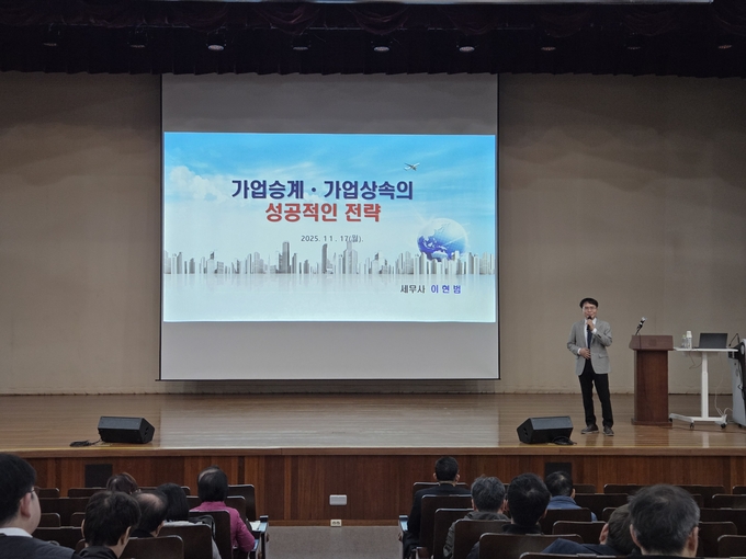 이 세무사는 이날 교육에서 ▷재산 종류별 증여 및 상속의 절세방법 ▷사례로 보는 가업승계 전략 ▷가업승계·가업상속의 사전요건 ▷가업승계·가업상속의 사후관리 ▷가업승계 개정세법 및 실무사례를 중심으로 강의했다.