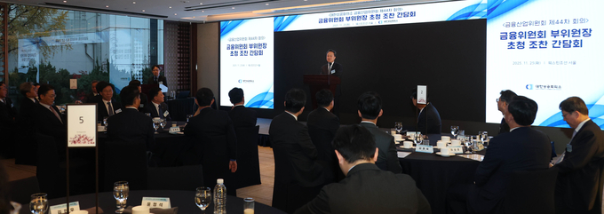 대한상공회의소는 25일 웨스틴조선호텔에서 권대영 금융위원회 부위원장을 초청해 금융산업위원회(위원장·진옥동 신한금융지주 회장) 제44차 전체회의를 개최했다.