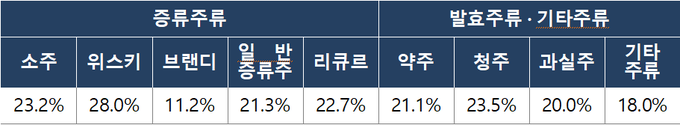 발효주류와 기타주류 등도 기준판매비율이 오른다.