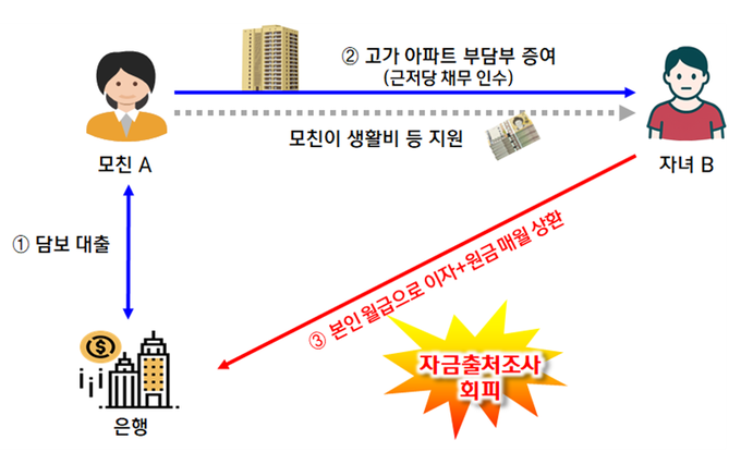 ◆고가 아파트를 부담부증여 받은 후 자금출처조사를 회피하기 위해 대출 상환은본인 소득으로, 생활비는부모 찬스