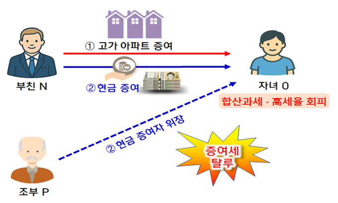 ◆아파트와 현금을 함께 증여하면서 합산과세를 피하기 위해 현금은 조부(祖父)가 세대생략 증여한 것으로 위장해 증여세 과소신고
