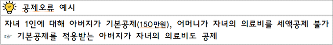 특히, 해당 부양가족의 보험료·교육비·의료비·기부금도 기본공제를 받는 사람만이 공제받을 수 있으므로 공제신고 전에 한 번 더 확인해야 하며, 이 외에도 2024.12.31. 이전에 사망한 가족이나 공제대상이 아닌 가족(삼촌·이모·조카 등)을 부양가족으로 잘못 신고하지 않도록 주의해야 한다.