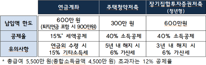 올해 연말까지 연금계좌나 주택청약종합저축 또는 청년형 장기집합투자증권저축에 납입하는 경우 소득·세액공제 혜택을 받을 수 있다.