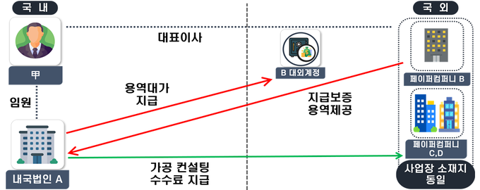 이에 더해, A는 B와 동일한 장소에 위치한 국외 페이퍼컴퍼니 C, D에게 실제 용역을 제공받은 사실이 확인되지 않음에도 컨설팅 명목으로 수수료를 지급하는 등 법인자금을 해외로 유출한 혐의가 드러났다.