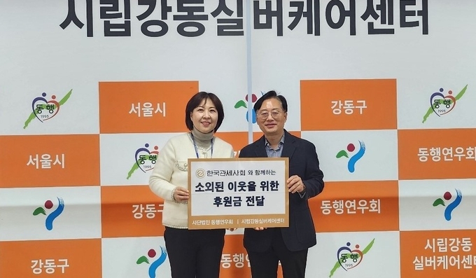 한국관세사회는 24일 서울 강동구 소재 ‘시립강동실버케어센터’를 방문, 몸이 불편한 어르신들을 위한 후원금을 전달하고, 나눔과 실천의 가치를 되새기는 시간을 가졌다.