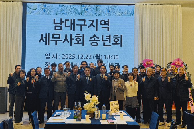 남대구지역세무사회(회장·김석수)는 지난 22일 대구 라테라스 웨딩홀에서 송년회를 열고, 한 해를 마무리하며 회원간 화합과 단합을 다지는 시간을 가졌다.