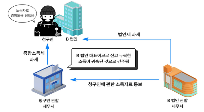 B법인 관할세무서는 신고 누락한 소득이 대표자인 청구인에게 귀속된 것으로 보고 과세자료를 통보하였고, 청구인 관할세무서는 이를 근거로 청구인에게 종합소득세를 부과했다.