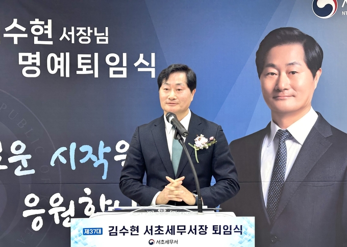 서초세무서는 29일 청사 2층 대강당에서 제37대 김수현 세무서장 명예퇴임식을 가졌다.