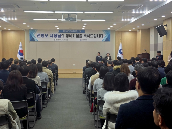 이날 강서세무서 직원들은 김 서장의 지난 발자취를 담은 영상과 각 과별 응원 영상을 전달하며 석별의 정을 나눴다.