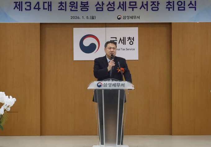 삼성세무서는 5일 강당에서 제34대 최원봉 세무서장 취임식을 개최했다.