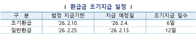국세청은 올해 1월, 2025년 2기분 부가가치세 신고시 소상공인이 26일까지 환급을 신청하면 부당환급 혐의가 없는 경우 2월4일까지 조기환급하고, 일반환급은 2월13일까지 앞당겨 지급한다.