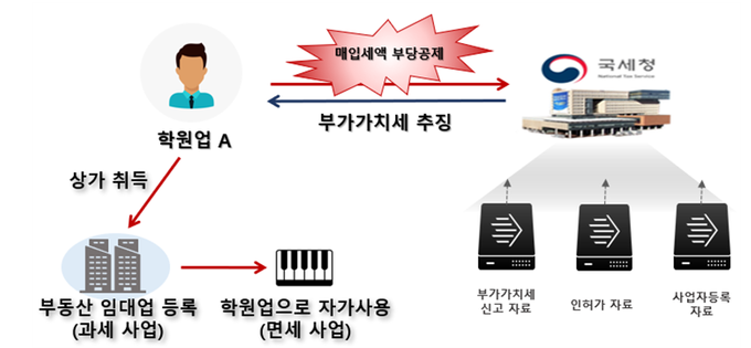 -학원업을 운영하는 A는 상가 건물 취득 후 과세사업인 비주거용 건물 임대업으로 사업자 등록 후 부가가치세를 환급 받았으며, 이후 동일 소재지에서 부동산 임대업과 면세사업인 학원업을 영위하는 등 불성실 혐의가 있어 분석대상자로 선정됐다.