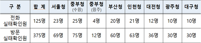 전화실태확인원 125명, 안내·상담…방문실태확인원 375명, 주소·사업장 방문