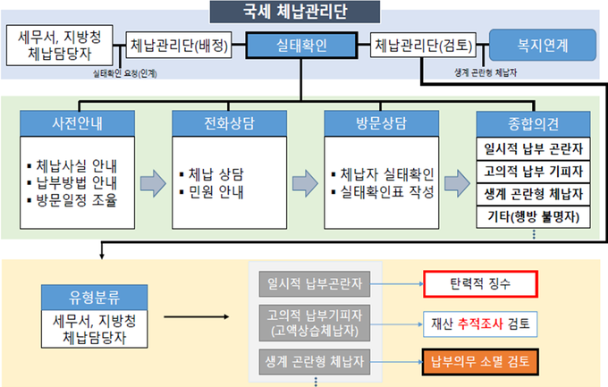앞서, 국세청은 모든 체납자를 직접 대면해 실제 경제력을 확인하고 체납자 유형에 적합한 맞춤형 체납관리 시스템을 구축하기 위해 국세 체납관리단 운영을 준비해 왔다.