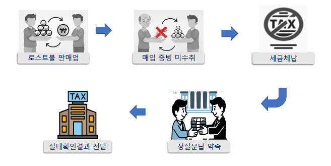 -B는 로스트볼(골프공)을 매입해 온라인으로 판매하는 사업자로 현재 부가가치세와 종합소득세 7건, 총 9천300만원을 체납 중인 상황이다. 실태확인원은 B의 사업장에 방문해 체납된 국세의 건수와 금액을 알려주었고, 납부의사, 거주지, 체납사유, 보유재산, 소득발생 여부 등에 대한 실태확인을 진행했다. 실태확인 결과, B는 현재 사업을 계속하고 있으나 보유재산이 없고, 남편과 더불어 자녀 2명을 데리고 보증금 2천만원과 월세 100만원에 임차한 아파트에서 거주하고 있는 것으로 확인됐다. B는 체납된 국세를 납부해야 하나 경기침체 등으로 일시납부가 어려워 매월 700만원씩 분납하겠다고 약속했으며, 실태확인원은 체납담당공무원에게 B가 분납을 희망한다는 실태확인 결과와 분납계획서를 전달했다.
