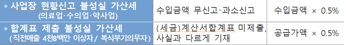 한편, 사업장 현황신고를 하지 않은 일부 사업자에게는 불성실 가산세가 부과되기에 해당 유형의 사업자는 반드시 2월10일까지 신고를 마쳐야 한다.