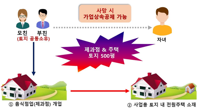 반면, 토지에 대형 베이커리카페를 개업해 10년간 운영하다 상속한 후 자녀가 5년만 유지하면 가업상속공제 300억원이 적용돼 상속세가 0원이 되는 등 상속세공제 본래 취지는 물론 조세정의에도 반하는 결과가 발생한다.