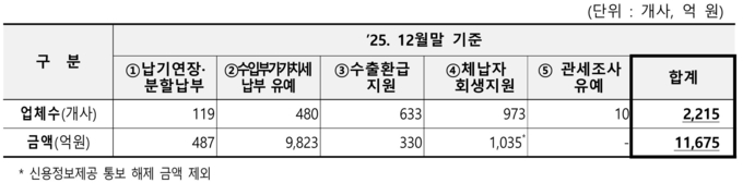 한편 관세청은 지난해 총 2천215개 업체에 세정지원을 실시, 1조1천675억원 규모의 자금유동성을 지원했다고 밝혔다.