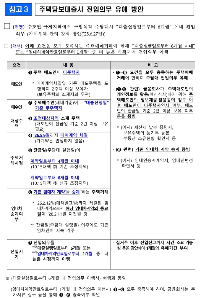 ◆임대 중인 주택에 대한 실거주 의무 유예와 주택담보대출 전입신고 기한 유예는 매도인이 1주택자일 때도 가능한가?