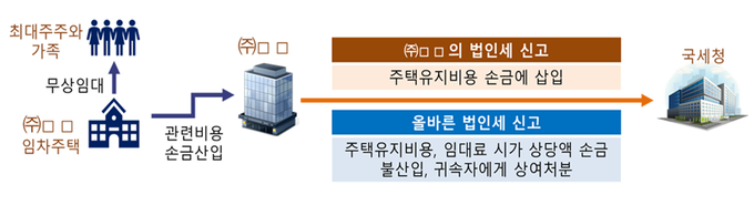 투자자문업을 영위하는 ㈜□□은 임차한 주택을 대주주와 그 가족에게 무상으로 임대하고 관련 비용을 손금에 산입해 법인세를 신고했다.