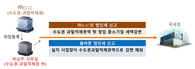 국세청은 검증을 통해 택배 발송내역, 대표자 및 직원의 거주지 등 사업을 총괄하는 장소는 수도권과밀억제권역 내로 공유오피스는 인적·물적 시설없이 우편물 수령만 가능한 장소임을 확인했으며, 부당하게 감면받은 창업중소기업 세액감면을 부인하고 법인세를 추징했다.