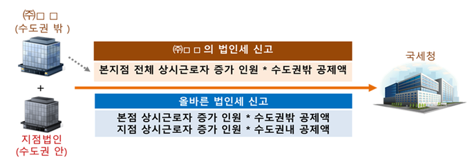 ◆수도권 밖에 본점을 두고 있는 법인이 고용증대세액 공제 적용시 지점(수도권 소재)사업자의 세액공제액을 과다 신고