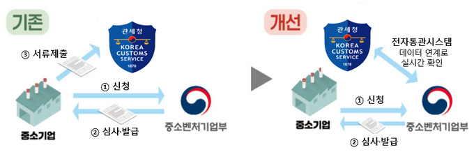 세관 또한 해당 기업의 중소기업 여부를 유선으로 확인하거나, 제출된 서류의 유효기간 경과 여부 및 발급 정보 진위 여부 등을 확인하는데 행정력을 소모해 왔다.