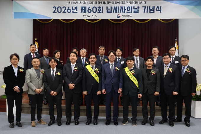 전주세무서(서장·박임선)는 지난 5일 제60회 납세자의 날을 맞아 모범납세자와 세정협조자 등 전직원이 참석한 가운데 기념식 행사를 개최했다.