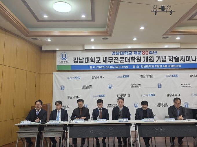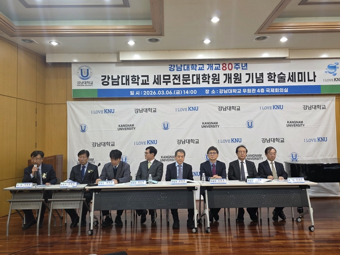 강남대학교 세무전문대학원은 6일 강남대 우원관 4층 국제회의실에서 ‘강남대학교 개교 80주년 및 강남대학교 세무전문대학원 개원 기념 학술세미나’를 성황리에 개최했다.